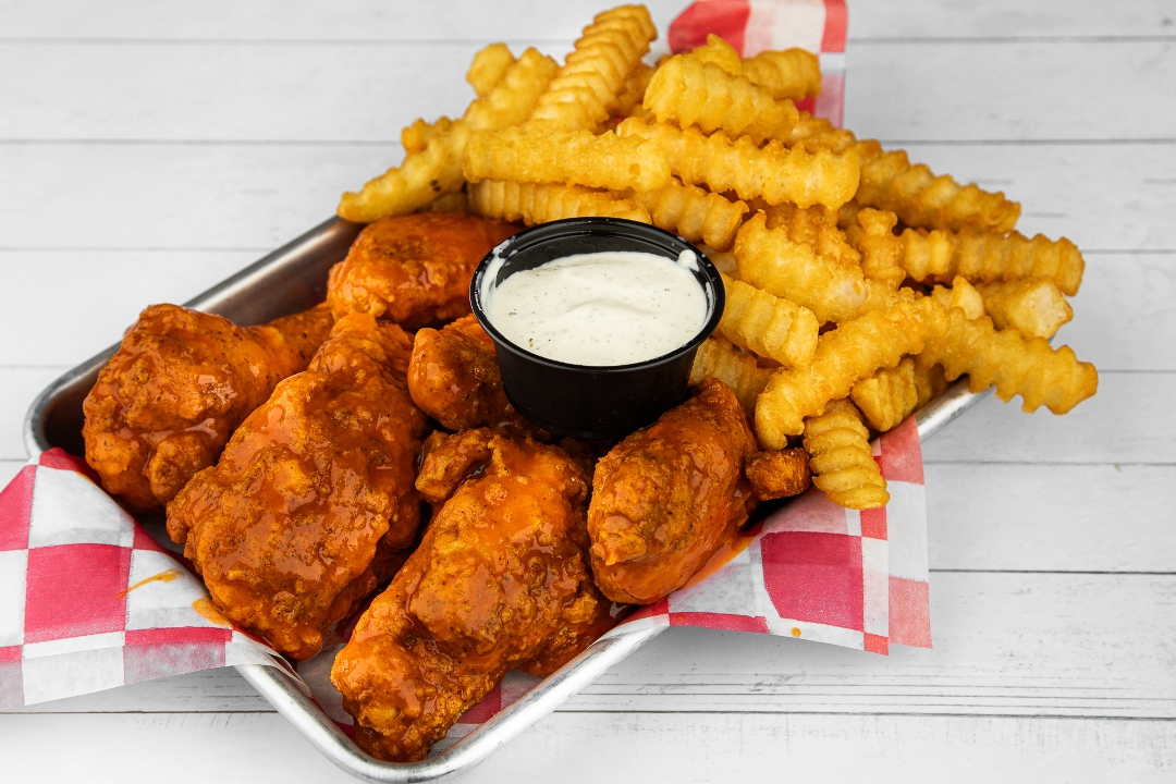 6 Wings Fried To Perfection Served With Crinkle Cut Fries